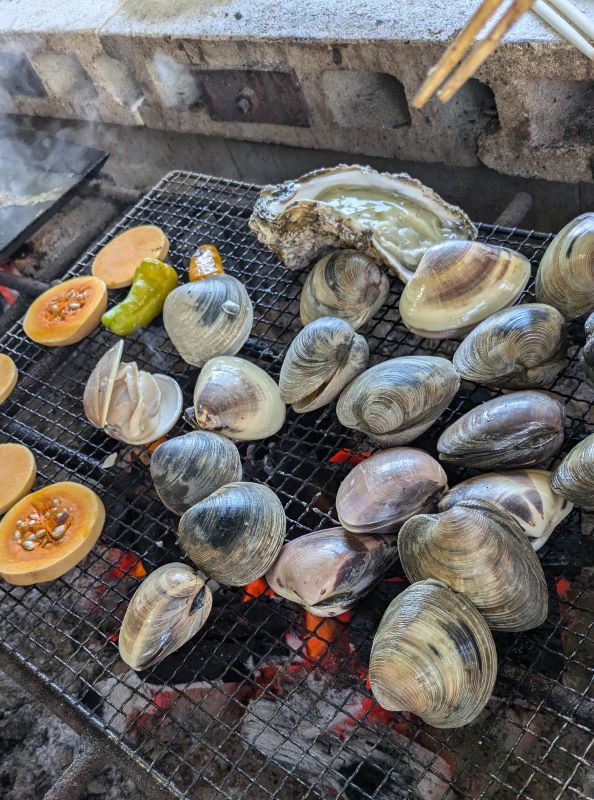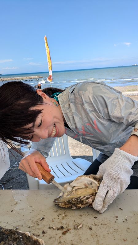 カキの殻むき体験もさせていただきました