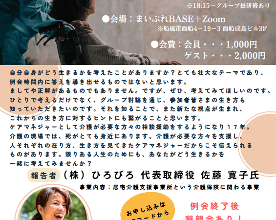 「そうか。今現在、千葉同友会の中で、おそらくケアマネジャーは自分ひとり。もしくはごく少数。」